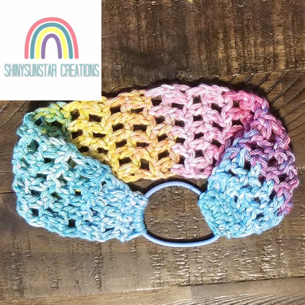 I have a lot of naturally curly hair. In the humid summer months, it can get a slightly unruly. So, I decided to design an open-grid type headband. It still allows my head to breath while providing some much needed direction for my curls. I have written the pattern with the use of an elastic hair tie to allow for better stretch. However, you could easily turn this into a sewn closed, tie closed, twisted or other modified designs. I am just giving you the basics with this pattern. Feel free to experiment until you are happy with your creation! Happy Crocheting!